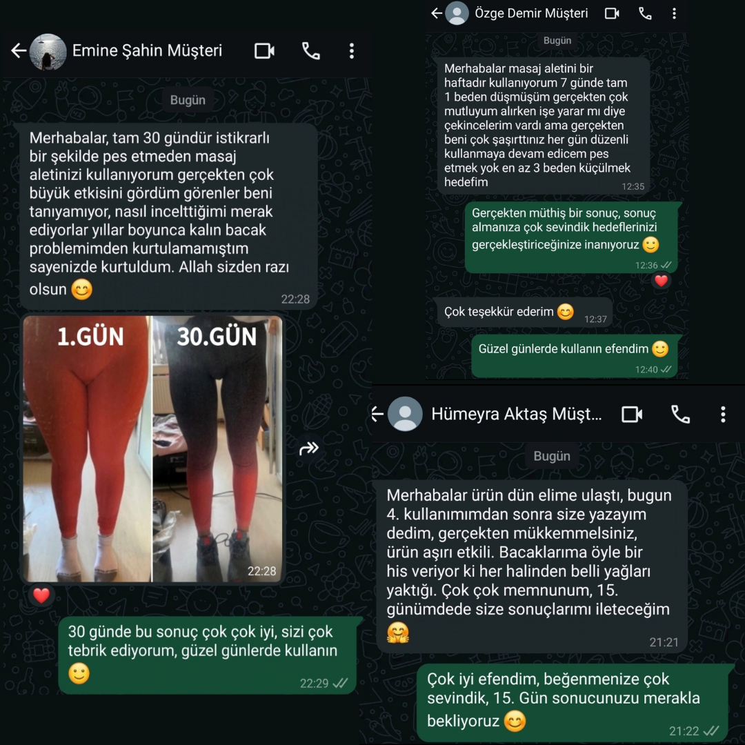 2 hafta düzenli kullanım sonrası bacak ve basen bölgelerinde gözle görülür incelme yaşadıklarını söyledi.